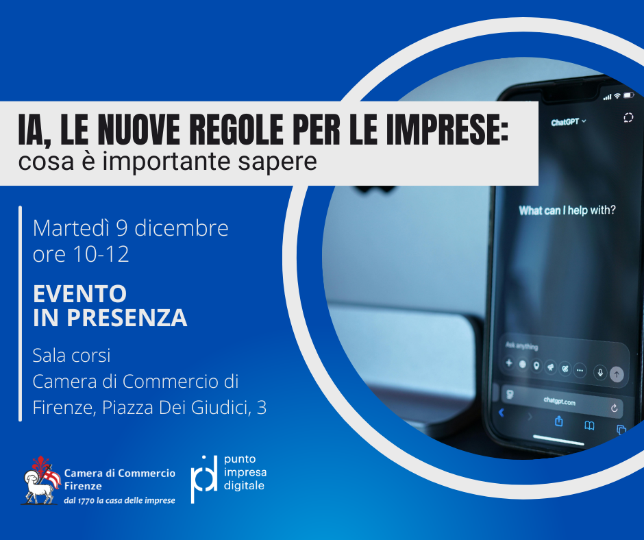 Il Punto Impresa Digitale della Camera di Commercio di Firenze organizza un seminario per offrire una panoramica concreta sugli aggiornamenti legislativi sull’utilizzo dell’IA nelle piccole imprese, sfatando miti e mostrando casi d’uso e strumenti alla portata.